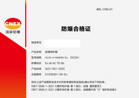 ⑤颁发证书:根据测试结果和工厂检查报告,认证机构做出认证决定。如果设备符合所有要求,将颁发防爆合格证书,证书中注明设备型号、防爆标志、使用条件及有效期等信息。